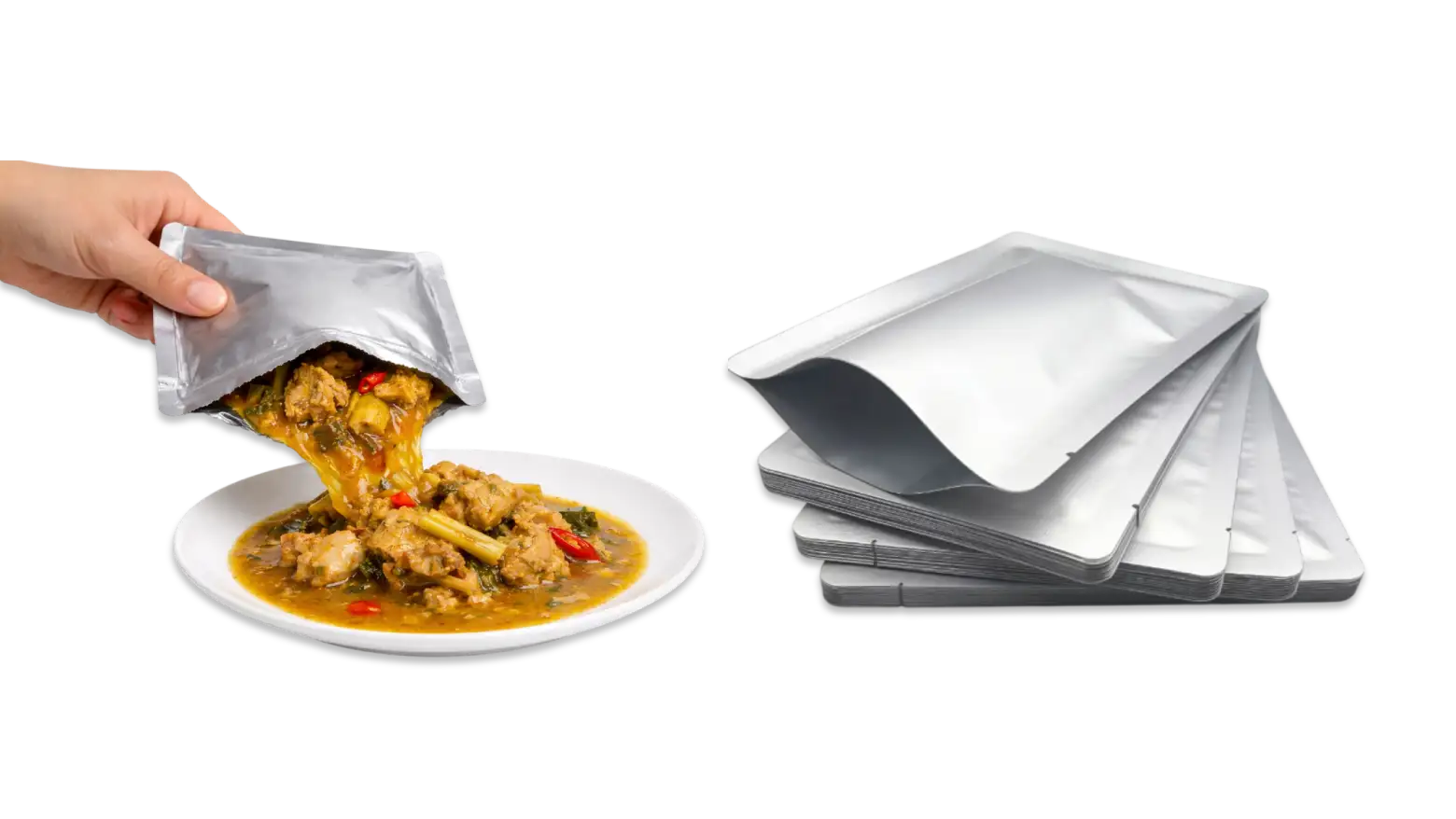 Optimalkan bisnis kuliner Anda menjadi produk siap saji yang awet hingga 12 bulan di suhu ruang. dengan Retort Pouch Premium 104 Mikron.